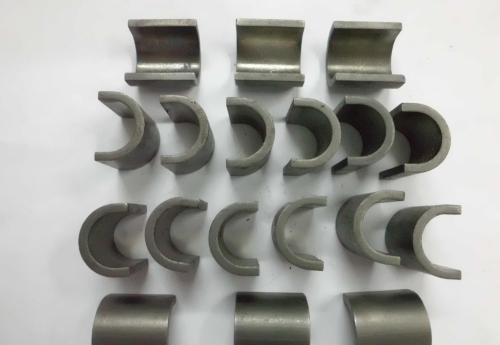 在粉末冶金生產中, 鐵粉的用量比其金屬粉末大得多。 鐵粉的 60% ~ 70% 用于制造粉末冶金零件。主要類型有鐵基材料、鐵鎳合金、鐵銅合金及鐵合 金和鋼。粉末冶金鐵基結構零件具有精度較高,表面粗糙值小,不需或只需 少量切削加工,節省材料,生產率高,制品多孔,可浸潤滑油,減摩、減振、 消聲等特點。 廣泛用于制造機械零件, 如機床上的調整墊圈、 調整環、 端蓋、 滑塊、底座、偏心輪,汽車中的油泵齒輪、活塞環,拖拉機上的傳動齒輪、 活塞環,以及接頭、隔套、油泵轉子、擋套、滾子等。 粉末冶金鐵基結構材料的牌號用“粉”、“鐵”、“構”三字的漢語拼 音字首“FTG”,加化合碳含量的萬分數、主加合金元素的符號及其含量的 百分數、輔加合金元素的符號及其含量的百分數和抗拉強度組成。如 FTG60 -20 , 表示化合碳量 0.4% ~ 0.7%, 抗拉強度 200MPa 的粉末冶金鐵基結構材料; FTG60Cu3Mo-40 ,表示化合碳量 0.4% ~ 0.7% ,合金元素含量 Cu2% ~ 4% 、 Mo0. 5% ~ 1.0% ,抗拉強度 400MPa 的粉末冶金鐵基結構材料。